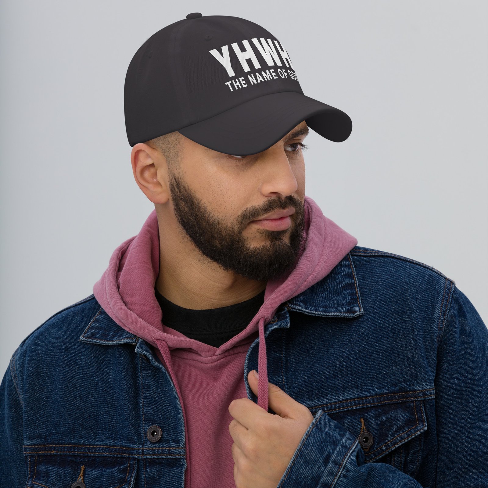 Minimalist yet powerful cap with logo featuring “YHWH THE NAME OF GOD” — the sacred, holy and unmentionable name of God in Hebrew tradition. This one’s got a low profile with an adjustable strap and curved visor.